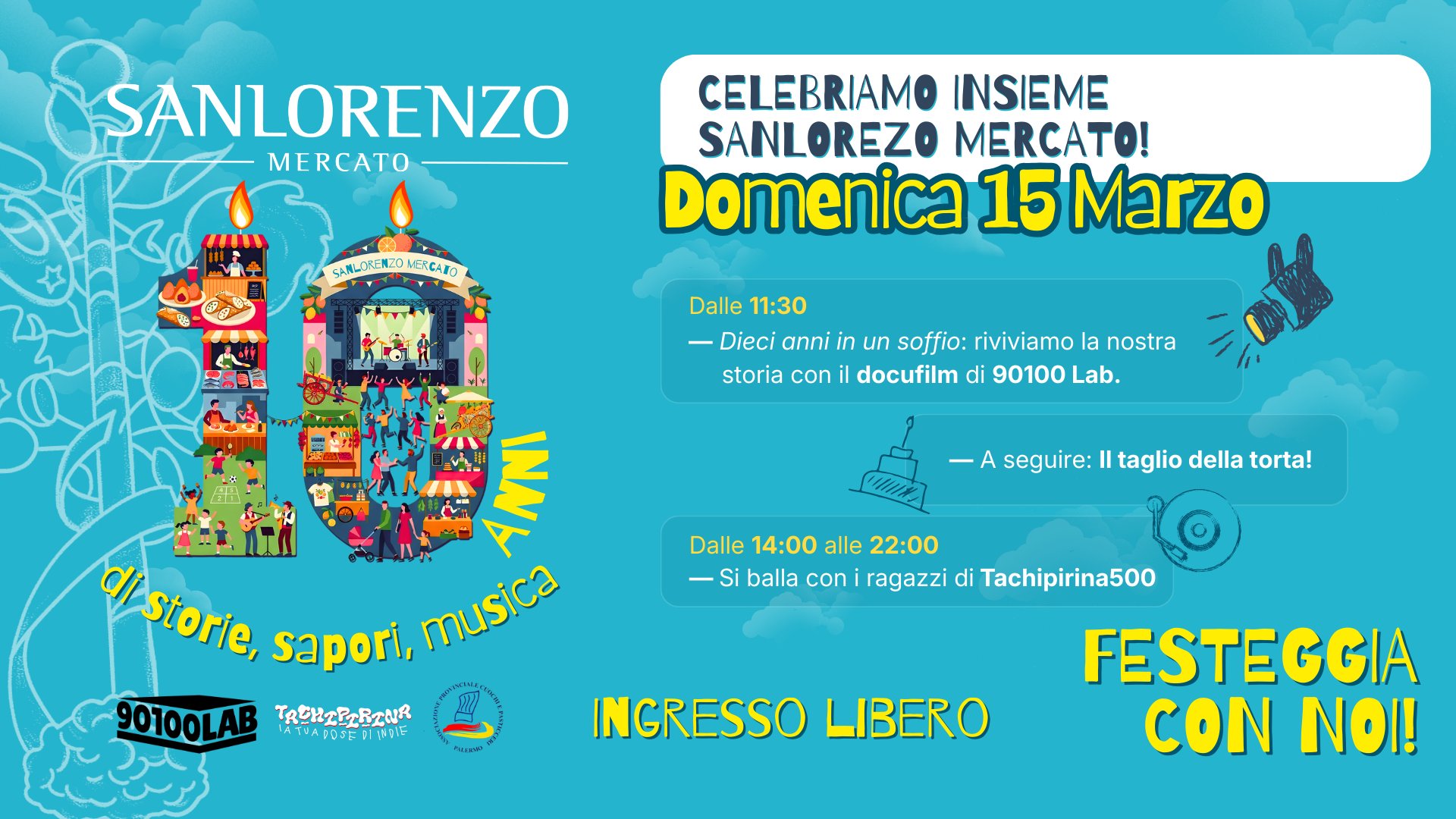 Insieme ai ragazzi di 90100 Lab, presentiamo il docufilm ufficiale del Decennale. Un talk e una proiezione speciale per rivivere i momenti piรน belli, i volti e le storie che hanno reso il Mercato il cuore pulsante di Palermo.