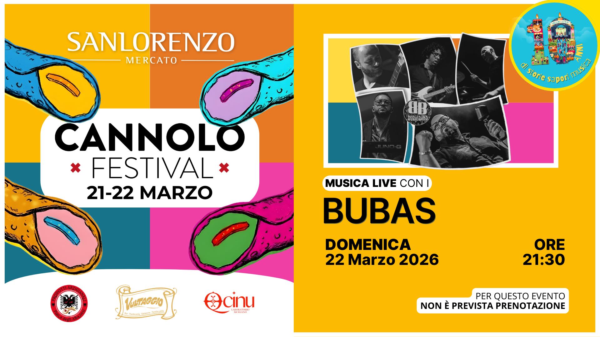 Dom. 22 Marzo | CANNOLO FESTIVAL | Musica Live con i Bubas