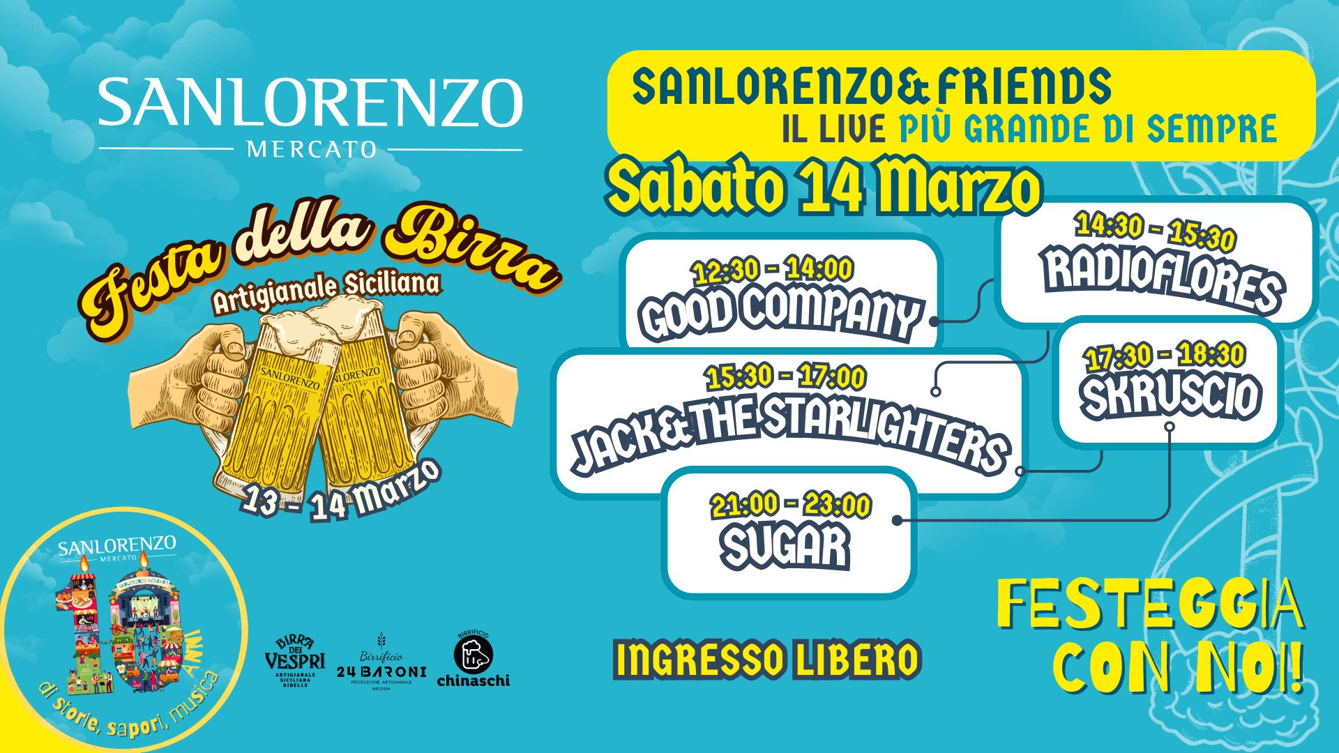 Sabato 14 marzo è il giorno di SANLORENZO & FRIENDS: una maratona musicale incredibile con le band che hanno fatto la storia del nostro palco, accompagnata dai migliori luppoli siciliani.