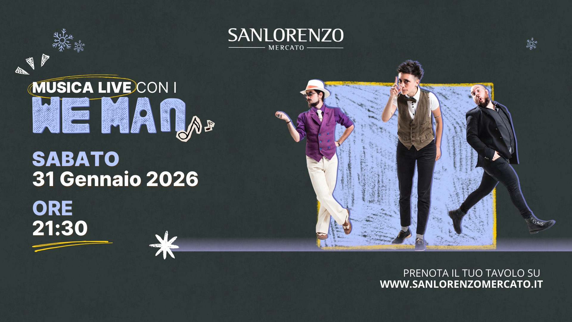 Sabato 31 Gennaio alle 21:30, il palco di Sanlorenzo Mercato si accende con lo show travolgente dei WE MAN. Se li conoscete già, sapete che è impossibile restare seduti; se non li avete mai visti, preparatevi a una scarica di adrenalina pura!