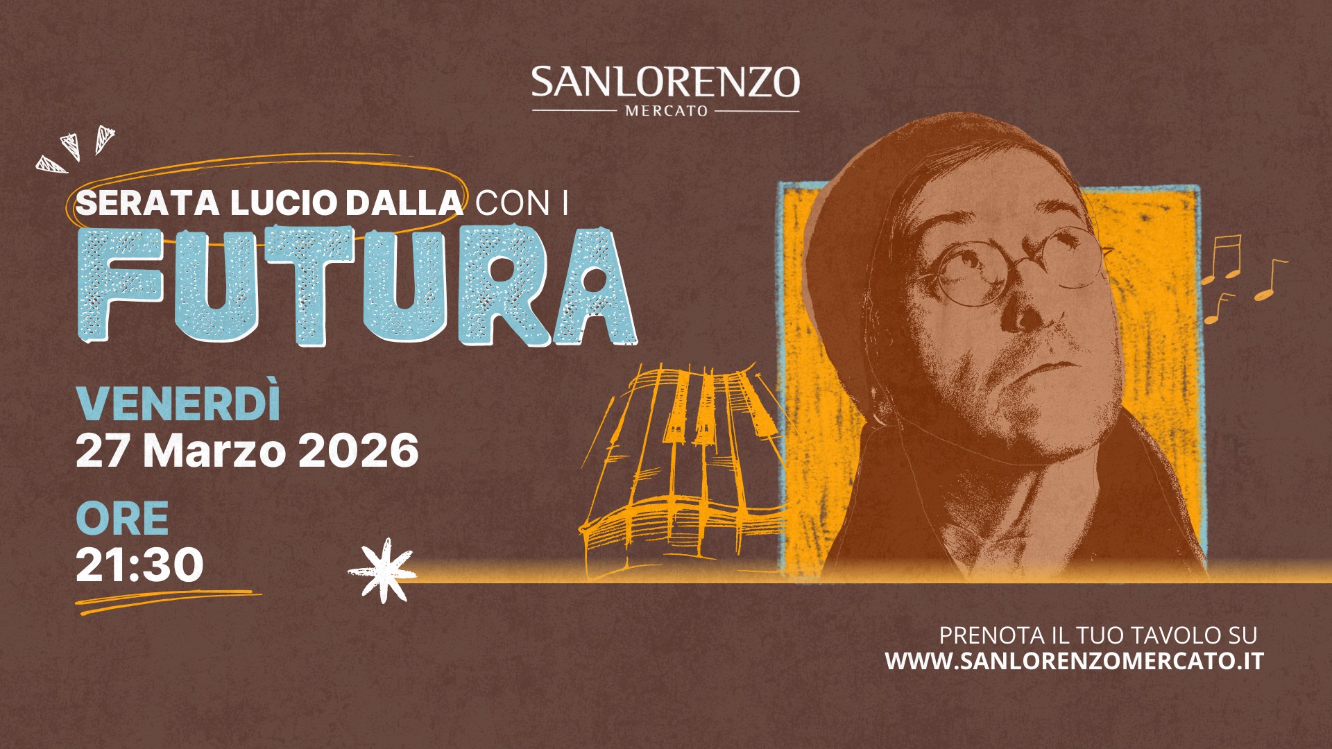 Venerdì 27 Marzo alle 21:30, Sanlorenzo Mercato si trasforma in un piccolo porto di mare per accogliere la magia di Lucio Dalla. Sul palco arrivano i Futura, pronti a regalarci un tributo emozionante all’uomo che ha saputo raccontare l’amore, il mare e la libertà come nessun altro. ⛵️🎵
