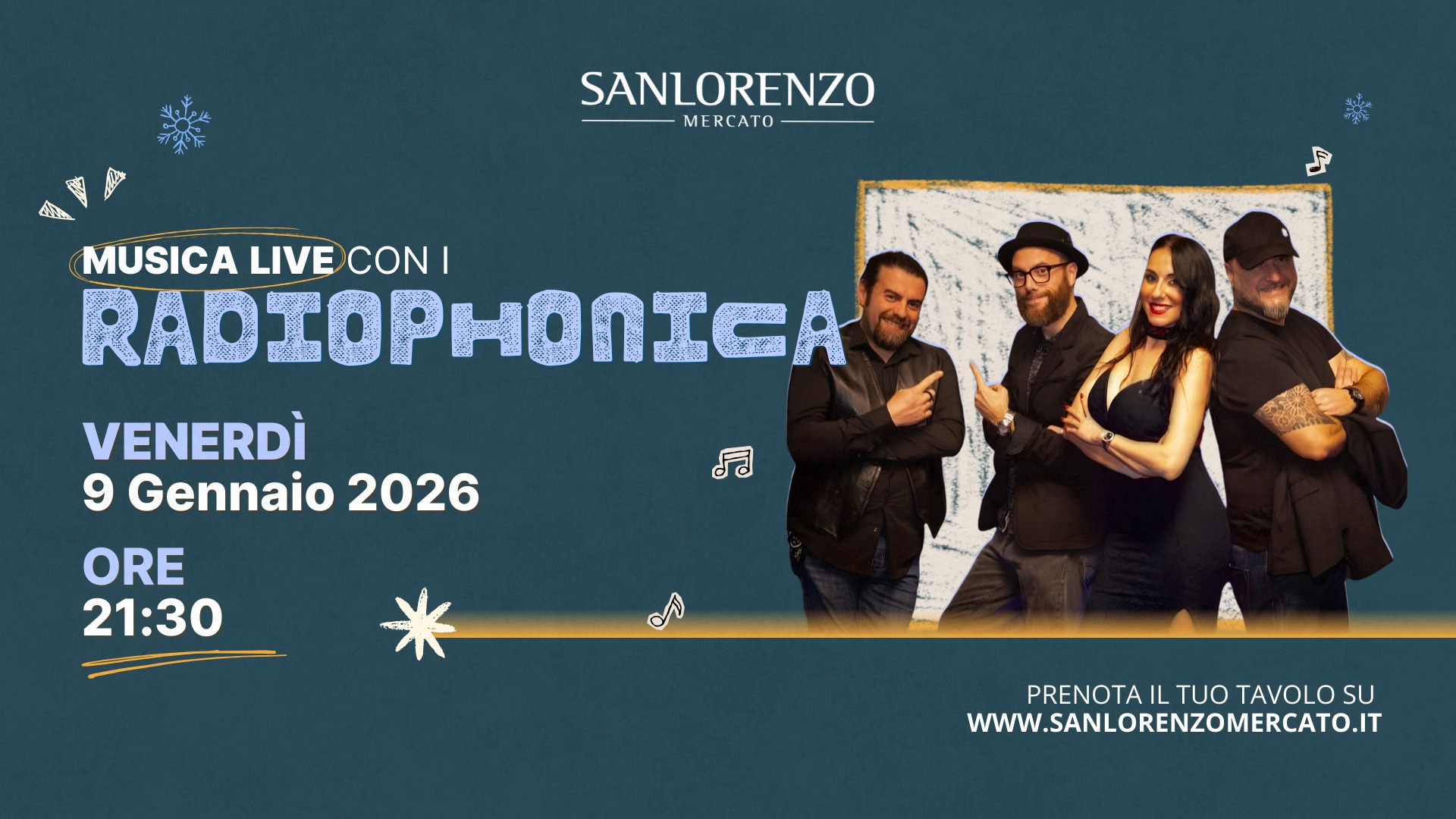 Venerdì 9 Gennaio alle 21:30, arrivano i Radiophonica per una serata carica di energia e grandi successi. Preparatevi a un viaggio musicale travolgente che attraversa il pop e il rock più amato, tutto suonato con la grinta che li contraddistingue.
